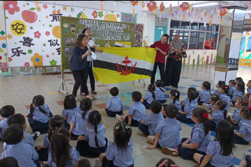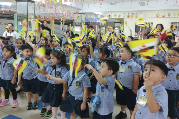 | ▲ 汶中幼教向小朋友介绍汶莱国旗。 | ▲ “国旗在我心中!” |