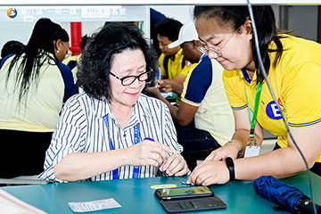 | ▲ 图为汶中代表团在观展时摄。 | ▲ 许月兰校长(前左)在组装“电子元件”。 |