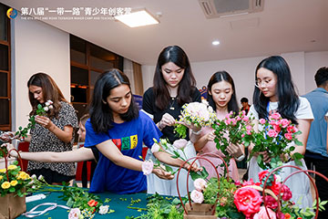 | ▲ 编织花卉。 | ▲ 图为各国参营者参观昆明国际花卉拍卖交易中心大合照。 |