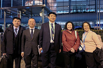 | ▲ 汶中许月兰校长(右2)及关慧珊老师(右)与世界汉语教学学会会长钟英华 (中)、汉考国际教育科技(北京)有限公司董事长兼总经理李佩泽(左2)等合影。 |