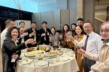 ▲ 汉考国际教育科技有限公司在万龙洲海鲜楼宴请所有中文水平考试合作单位时,汉考国际教育科技(北京)有限公司董事长兼总经理李佩泽(右2)、汉考国际教育科技(北京)有限公司副总经理刘小龙(右4)前来敬酒时摄。左为汶中许月兰校长、缅甸福庆语言与电脑学院长李祖清博士(左2)及菲律宾华教中心黄端铭主席(左3)。 |