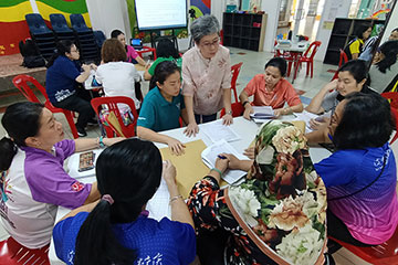 | ▲ 图为卢秀凤专家与汶中幼教探讨“观察和评估内容的编排”。 | ▲ 图为汶中幼儿园集体讨论环节。 |