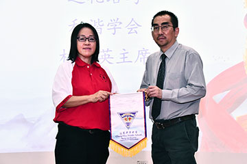 | ▲ 汶中马海耀副校长赠送锦旗予汶莱和谐学会主席林梅英女士(左)。 | ▲ 图为汶中小学《弟子规》课程闭幕仪式大合照。 |